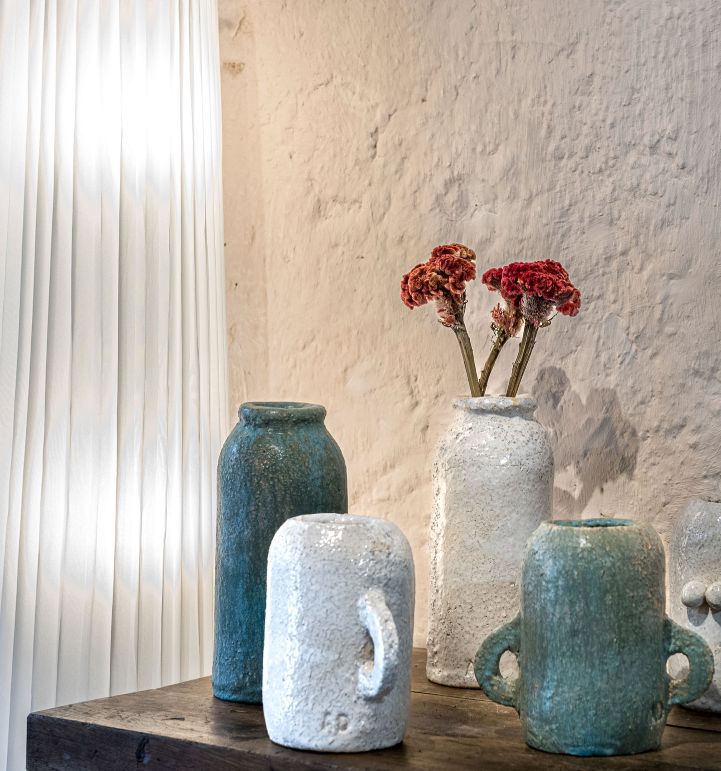Chaque pièce est façonnée à la main, en petites séries, pour préserver le caractère unique de chaque forme, chaque surface, chaque imperfection.