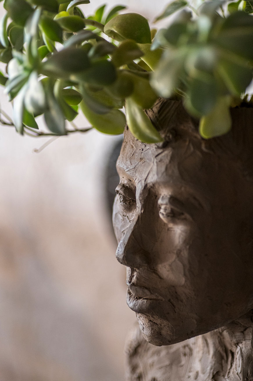 Sculptures vivantes, émaillées ou laissées brutes, ces visages de femme parfois ornés de motifs prennent forme entièrement à la main. Elles célèbrent la rencontre entre femme et nature, savoir-faire artisanal et expression artistique contemporaine.